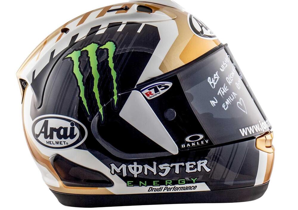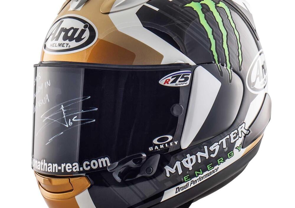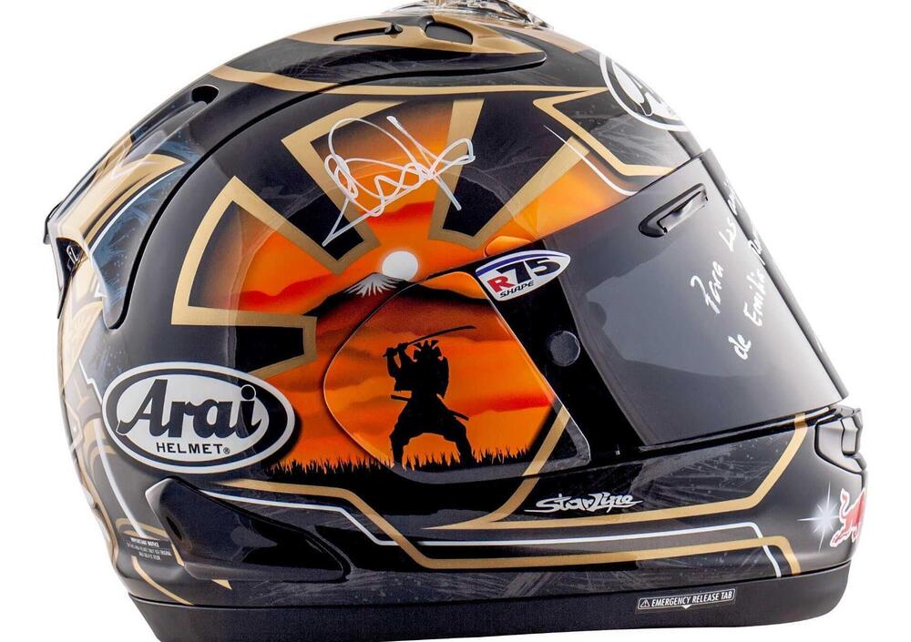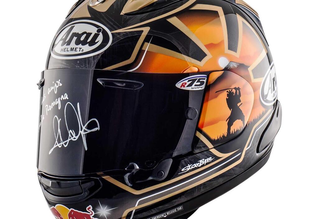 Entrambi gli esemplari sono autografati sulle visiere originali e personalizzate Arai Racing 2D utilizzate dai piloti.