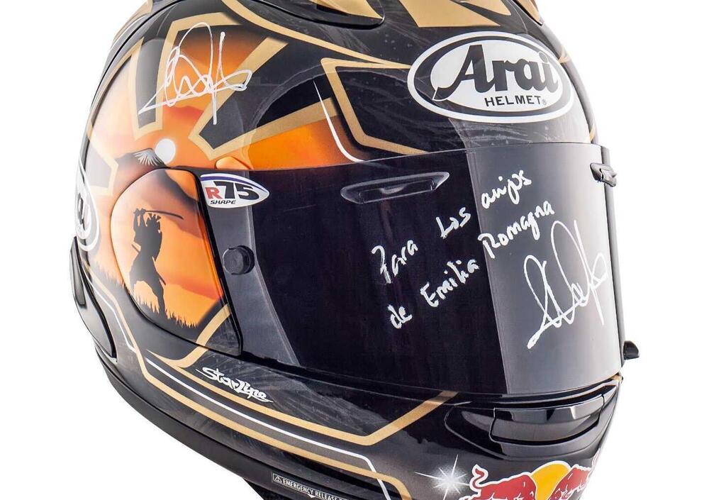 Prontamente attivatasi, BER Racing Europe, distributore ufficiale per l’Italia dei caschi Arai, ha subito ottenuto il supporto del noto brand giapponese per indire una “Lotteria Solidale in favore degli alluvionati dell’Emilia Romagna”, donando due pezzi unici della Collezione Arai Helmet, autografati da due dei piloti più amati nella storia del Motociclismo moderno.