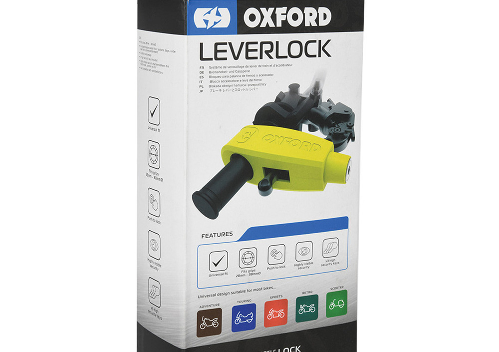 LEVERLOCK – Questo antifurto meccanico blocca la leva del freno e l’acceleratore. Immobilizza moto, scooter e ATV, ed è prodotto in nero e in un giallo ad alta visibilità. Funziona con manopole di diametro da 28 a 38 mm; ha un design compatto e sta comodamente anche in una tasca. Il suo meccanismo “push to lock” lo rende facilissimo da utilizzare. In dotazione vengono fornite 3 chiavi di alta sicurezza. Potrebbe non essere compatibile con alcuni paramani. PREZZO AL PUBBLICO: 44,00 euro.