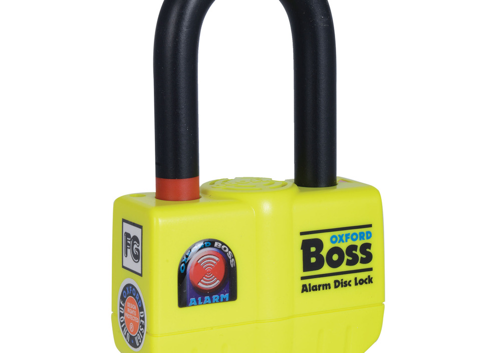 BOSS ALARM – Il lucchetto da disco freno, dal design unico e dal colore acceso, definito da OXFORD "il più robusto di sempre e resistente a ogni agente atmosferico". La sua robustezza e affidabilità è stata comprovata da ben 7 enti specializzati in standard di sicurezza internazionale (tra cui figura la prestigiosa e indipendente SOLD SECURE). Acquistabile con arco di diametro 14 o 16 mm, esso integra un modulo “allarme sonoro” removibile che in questa nuova versione ha una portata migliorata (le batterie assicurano 5 anni di funzionamento). L’altezza dell’arco permette di utilizzare il BOSS ALARM abbinato a una catena (optional). Tre le chiavi fornite a corredo. PREZZO AL PUBBLICO: 109,90 euro.