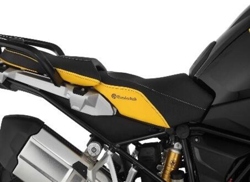 La Sella per conducente AKTIVKOMFORT (Art. n. 42720-409) realizzata da Wunderlich per l’EDITION 40 years GS è di colore nero/giallo e risulta perfettamente integrata al design della moto. Vanta una caratteristica bordatura ergonomica 3D che consente al conducente di “integrarsi perfettamente alla moto”. Forma e inclinazione della sella (con struttura progressiva a due strati) promuovono una postura della schiena comoda e naturale, garantendo una guida rilassata e sicura.