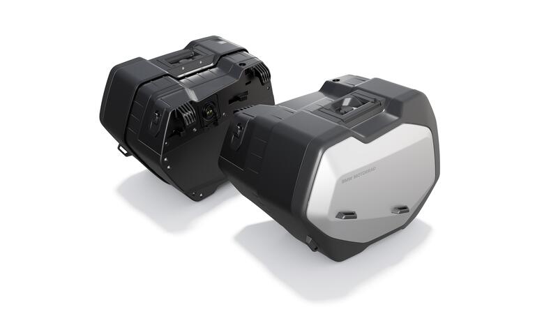 In termini di tecnologia e funzionalità, il nuovo sistema di valigie Vario definisce ancora una volta lo standard. Un altro punto di forza è che il sistema di valigie è ora elettrificato. D'ora in poi, i dispositivi elettronici come smartphone, tablet o laptop possono essere ricaricati nel vano bagagli della valigia Vario sinistra. È presente una porta di ricarica USB-A che consente la ricarica tramite la rete di bordo con una potenza di ricarica fino a 15 W (5 V / 3 A). Un'altra porta USB-A si trova nel bauletto. Inoltre, l'illuminazione integrata nelle valigie Vario e nel top case rende molto confortevoli le operazioni di carico e scarico notturne.