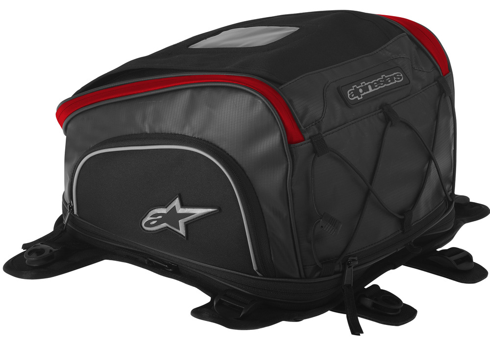 Base staccabile con tasca mappa trasparente e magneti staccabili per una connessione sicura con la moto e attacchi aggiuntivi a cinghia per l’impiego con serbatoi in materiale plastico.