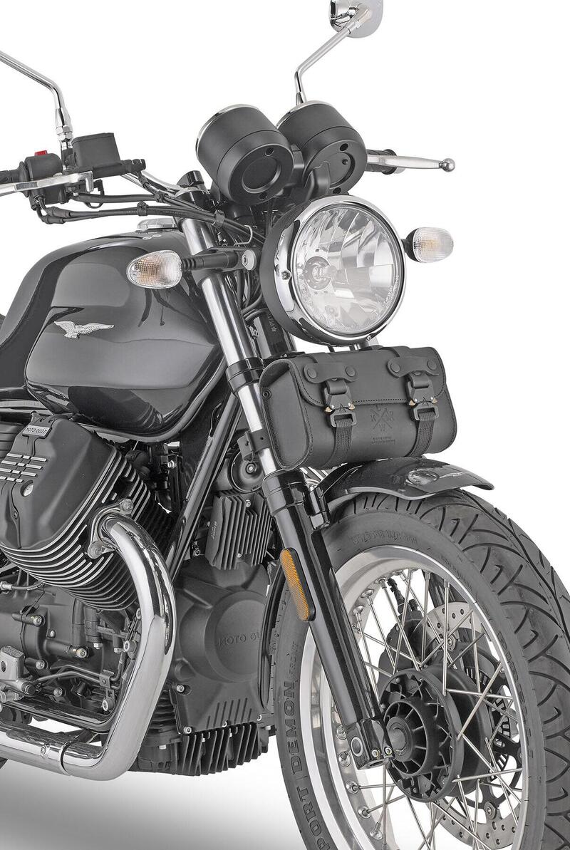 Coppia di borsoni laterali da 28 litri, ognuno capace di contenere comodamente un casco integrale. L’aspetto retrò nasconde in realtà soluzioni tecniche a favore della praticità: le due borse sono unite tra loro da una fascia centrale da posizionare sotto la sella, regolabile in larghezza con chiusura a strappo, alla quale si agganciano tramite 3 file di doppi bottoni e una zip, veloce alternativa ai belli ma scomodi cordini in cuoio tipici di questa tipologia di accessori. La chiusura prevede invece 2 cinghie dotate di fibbia in alluminio disegnato in modo da richiamare il mondo classic, veloce da azionare grazie ai due tasti laterali.