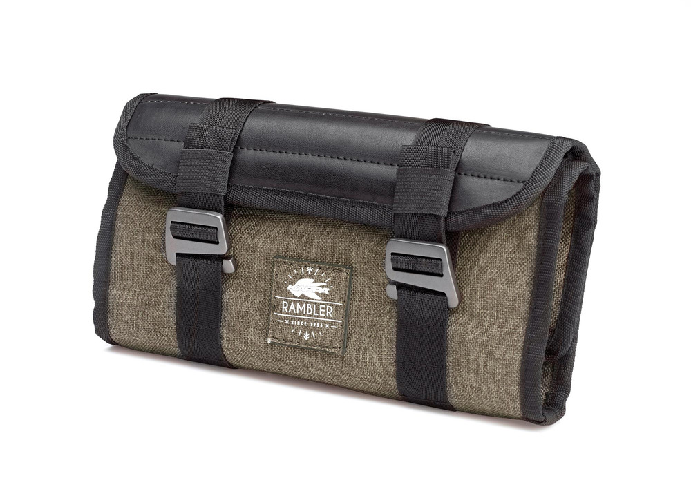 Fascia arrotolabile con scomparto porta attrezzi dotata di gancio per poterla appendere.