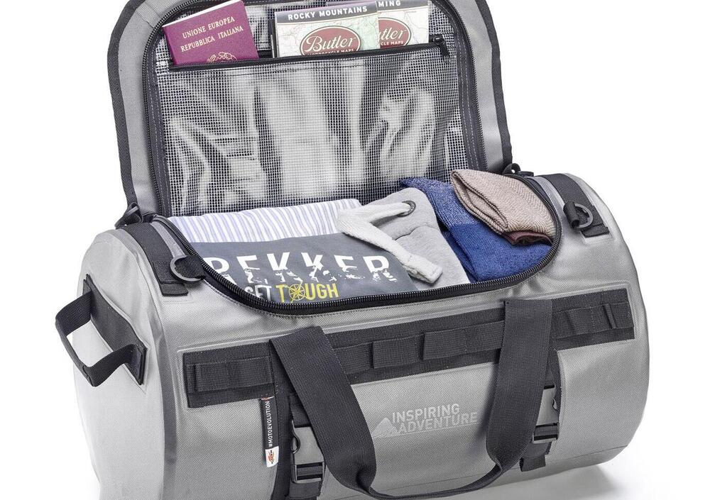 Per programmare un weekend su due ruote non serve possedere una tourer. Se non puntate a percorsi estremi, qualsiasi moto o scooter di media cilindrata è in grado di portarvi a destinazione. Se non volete essere limitati dalla capacità di carico e avete a cuore l’ergonomia e la praticità, il borsone RAW409 di KAPPA rappresenta una buona soluzione: se si viaggia in solitaria trova posto sulla sella del passeggero, se partite in coppia può stare tranquillamente sul portapacchi. Si fissa facilmente al veicolo utilizzando le 4 cinghie laterali regolabili con fibbia previste in dotazione.