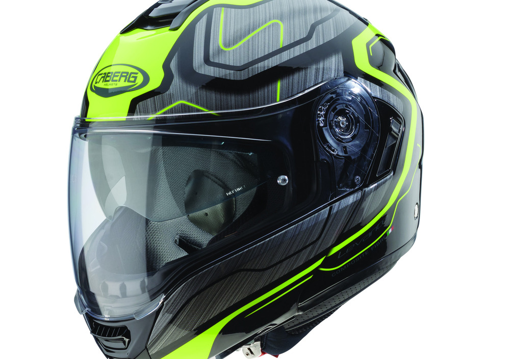 Il casco è inoltre equipaggiato di serie con la lente antiappannante Pinlock Max Vision, ed è dotato di visiera parasole integrata Double Visor Tech, facile da manovrare anche indossando guanti.