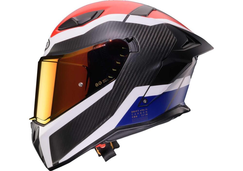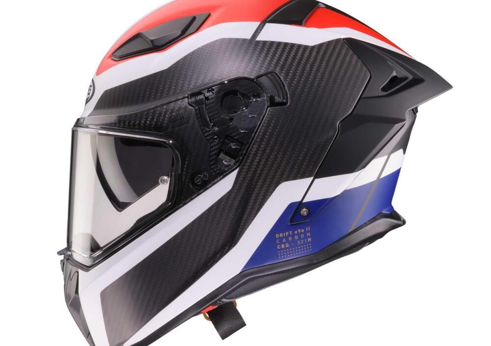 Oltre all'impatto visivo, il Drift Evo II Carbon mantiene inalterate le sue doti tecniche, a partire proprio dalla calotta in pura fibra di carbonio che assicura la massima resistenza strutturale a fronte di un peso estremamente contenuto, rendendolo il compagno di viaggio ideale sia per la guida sportiva tra i cordoli che per i lunghi tragitti autostradali. Per garantire una calzata ottimale a ogni motociclista, il casco è declinato in due misure di calotta: la più piccola copre le taglie dalla XS alla M e ferma l'ago della bilancia a soli 1350 grammi, mentre la più grande, destinata alle taglie dalla L alla XXL, si assesta sui 1400 grammi (con una tolleranza di 50 grammi per entrambe).