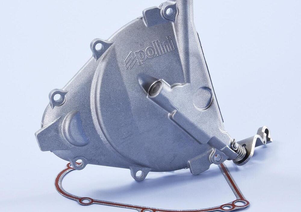 Intercambiabile al coperchio originale, il nuovo carter frizione Polini per Vespa è dotato dell’attuatore del tipo a cremagliera che consente uno scorrimento fluido e con basso attrito del comando frizione. Questa caratteristica lo rende indicato per le frizioni con carico molla maggiorato impiegate sui motori da competizione, ma al contempo rende particolarmente fluido e morbido il comando delle frizioni standard.