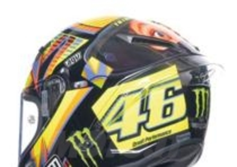 Il casco, che coniuga le prestazioni del modello racing Pista GP alle caratteristiche di utilizzo su strada, è la replica esatta di quello creato per Valentino Rossi dal designer Aldo Drudi e indossato dal dottore durante i test ufficiali di Sepang.