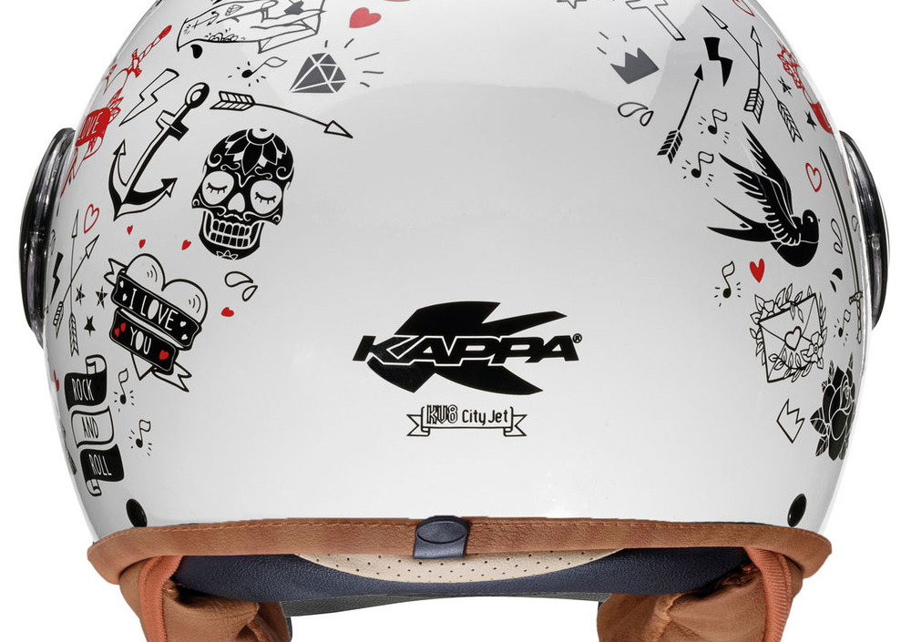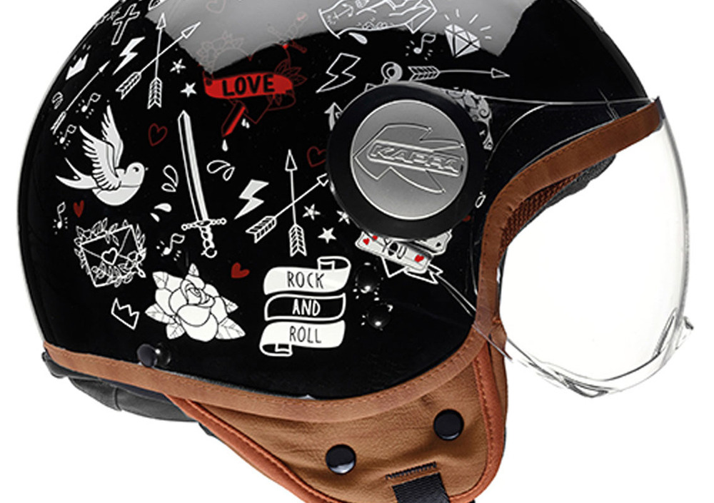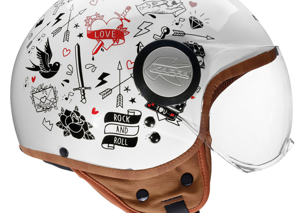 Il demi-jet KV8 di KAPPA si riconosce dalla sua visiera, corta e sagomata, ed è noto al pubblico per aver lanciato la linea FLAG, con chiari riferimenti alle bandiere italiana, USA e inglese.