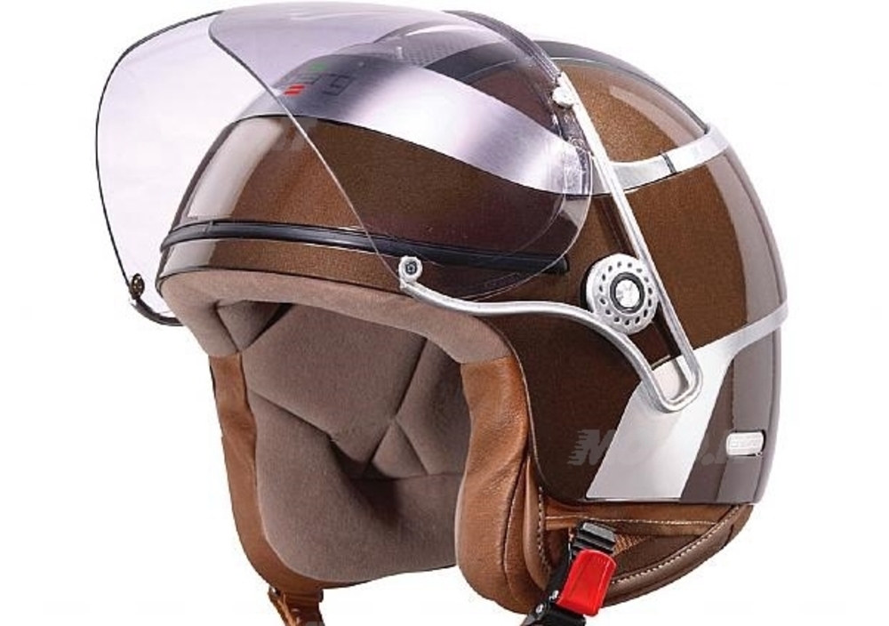 Una volta calzato, il casco si rivela leggero e ben bilanciato. La calzata è buona e fascia completamente la testa senza evidenziare particolari fastidi. La parte superiore dell'interno è poco imbottita (probabilmente per non ostacolare in nessun modo l'ingresso dell'aria dai fori di aerazione) e fa sentire la durezza del polistirolo sottostante. La parte laterale dell'interno comprime le orecchie ed in effetti lo spazio per le stesse risulta insufficiente. Con l'uso l'interno si ammorbidisce leggermente, ma le orecchie risultano sempre abbastanza compresse dalla spugna. Avremmo preferito l'utilizzo di guanciole (imbottiture laterali inferiori) amovibili, ma purtroppo l'interno del casco è fisso e non asportabile. Strano che un casco così innovativo utilizzi un interno fisso che non dà la possibilità all'utilizzatore di estrarlo e di lavarlo. Una scelta progettuale in contrasto con il resto del casco, che dispone invece di materiali all'avanguardia e tecnologicamente avanzati. Molto bello e ricercato anche il cinturino. Il nastro è marrone come l'interno, un pratico e imbottito sottogola in vera pelle si rivela molto comodo una volta chiuso il cinturino, agendo sulla chiusura micrometrica facilmente regolabile. E' inoltre presente un anello che consente di legare il casco alla moto o di fissarlo all'apposito "helmet holder" presente su molte moto.
