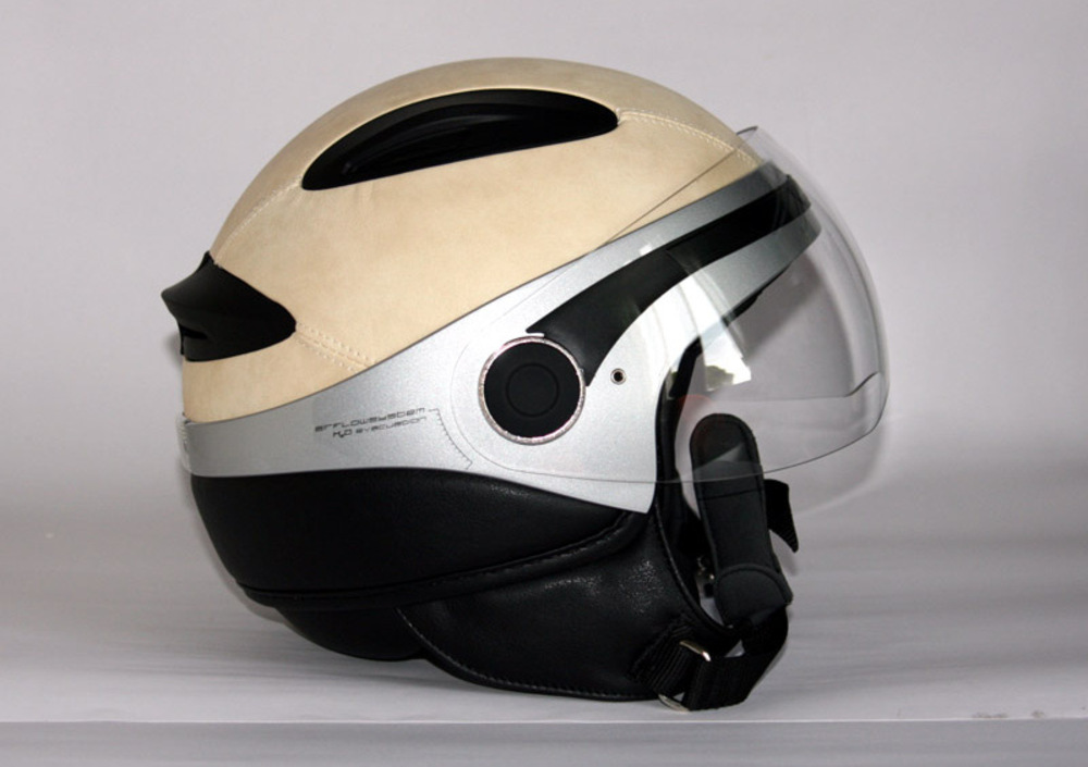 Il sistema di ventilazione è dotato di tre estrattori che si integrano perfettamente nella calotta senza rovinarne l’aerodinamicità e consentendo l’estrazione dell’aria calda dall’interno della calotta. La visiera a doppia bombatura ha uno spessore di mm.2, è stampata in policarbonato trasparente e dispone del trattamento antigraffio. Il movimento visiera è di facile azionamento e non richiede l’utilizzo di attrezzi per lo smontaggio ed il montaggio della visiera. L’interno è removibile e lavabile ed utilizza tessuti anallergici e traspiranti. Nastro in polipropilene nero per il cinturino, che dispone di una chiusura a scatto a regolazione micrometrica. Le taglie vanno dalla XS (53) alla XL (61) ed è disponibile in due versioni. Il modello Airflow Plus (quello utilizzato per la nostra prova) ha la calotta esterna ricoperta in pelle sintetica ed è disponibile in tre diversi colori : nero, crema e cuoio. Esiste poi la versione Airflow Classic che ha la calotta esterna verniciata nei colori : bianco opaco, nero opaco, bronzo opaco e azzurro lucido.