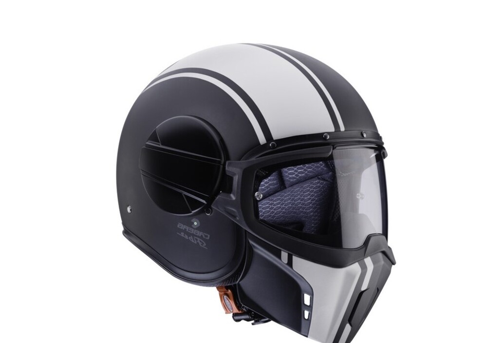 Questo jet è equipaggiato con una particolare visiera a forma di occhiale che aderisce al viso grazie alla spugna presente sul profilo inferiore della stessa, oltre ad una maschera che protegge il viso dagli agenti atmosferici e dagli insetti.