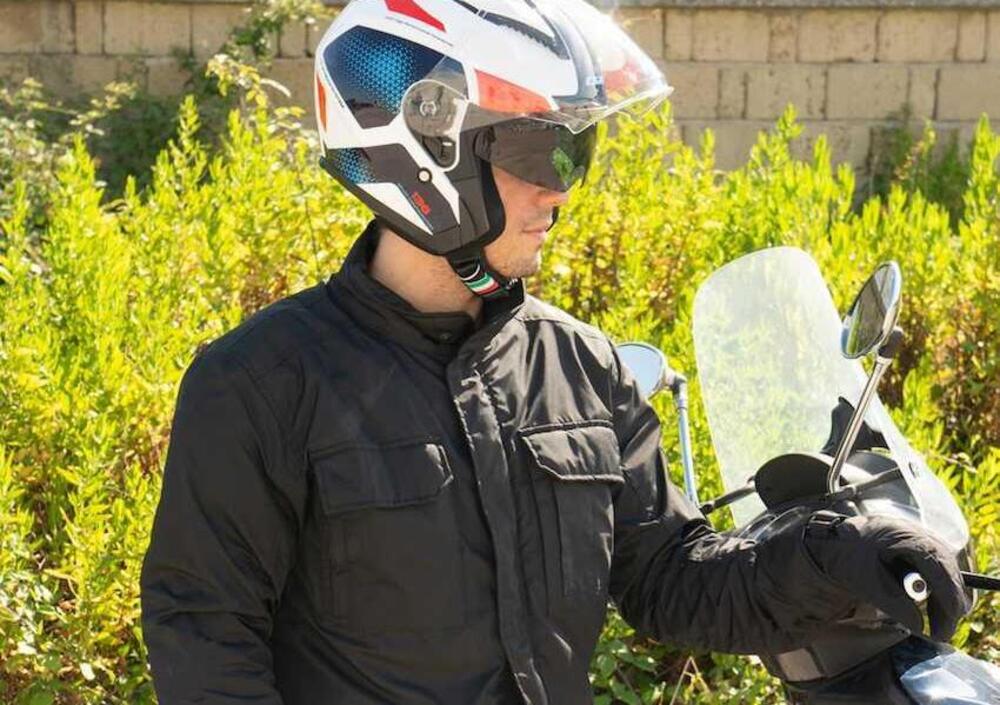 Gli interni termoformati esagonali per un comfort di calzata ottimizzato sono realizzati con tessuto Extracool e bande alta visibilità per migliorare la sicurezza passiva. La predisposizione per interfono, la chiusura con fibbia micrometrica, l'anello antifurto e l'elastico fermacinturino completano le dotazioni.