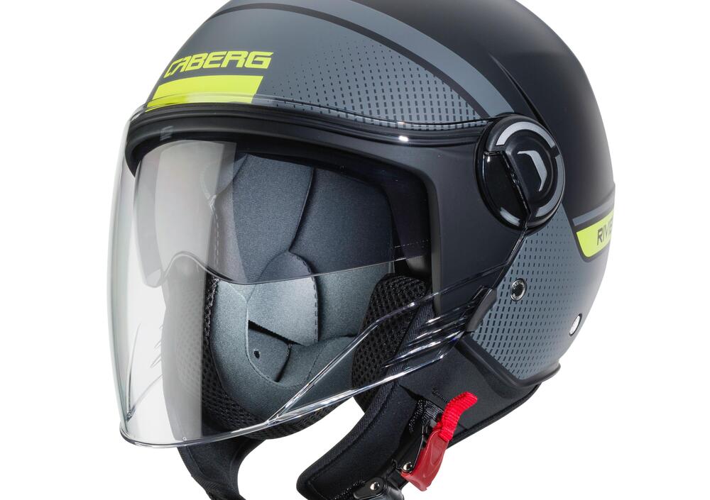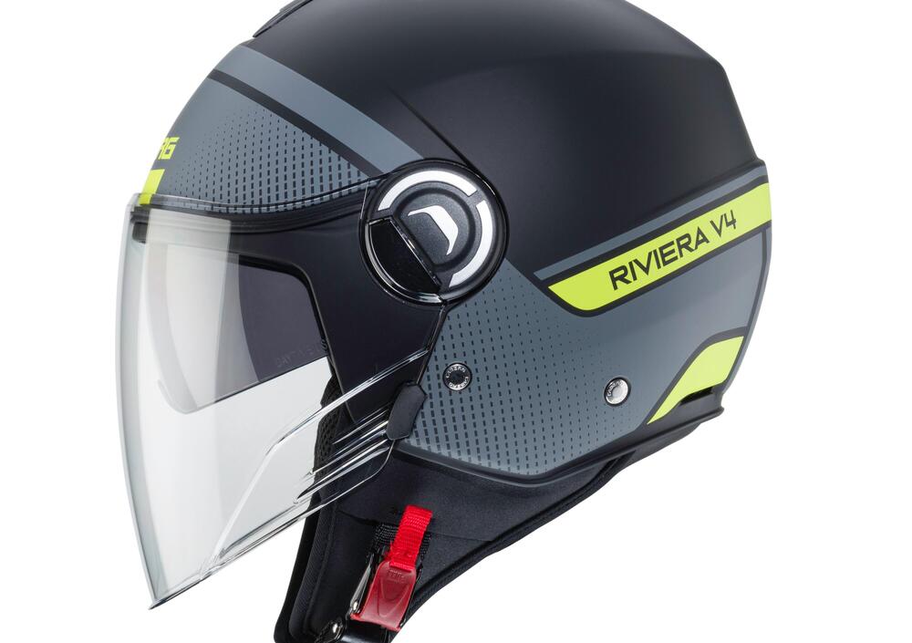 Riviera V4 è il nuovo demi jet di Caberg dalle linee innovative e al contempo eleganti, prodotto in due taglie di calotta per permettere una perfetta proporzione tra il volume del casco e la taglia del motociclista. Inoltre, grazie alle dimensioni compatte, risulta pratico e comodo da stivare nei sottosella di molti scooter.
