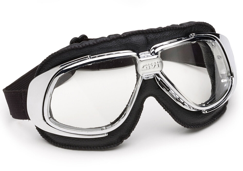 Gli attuali I400 hanno una struttura in leggero e robusto materiale plastico e vengono proposti in due finiture: il total black (I400M) oppure il cromato (I400S), caratteristica che permette un abbinamento ancora più stretto con il casco e con le varianti cromatiche della propria moto. Estetica a parte, gli occhialoni di GIVI proteggono molto bene la zona occhi, grazie al buon dimensionamento delle lenti, e offrono un angolo di visione ampio. Il telaietto supporta al centro il logo GIVI cromato ed è incorniciato con morbido tessuto anallergico lungo la zona a contatto con il viso e con ecopelle sulla parte anteriore. Originale il sistema di fissaggio dell’elastico, ovviamente regolabile, che “fascia lateralmente” le due lenti contribuendo a evitare l’entrata di aria fredda.