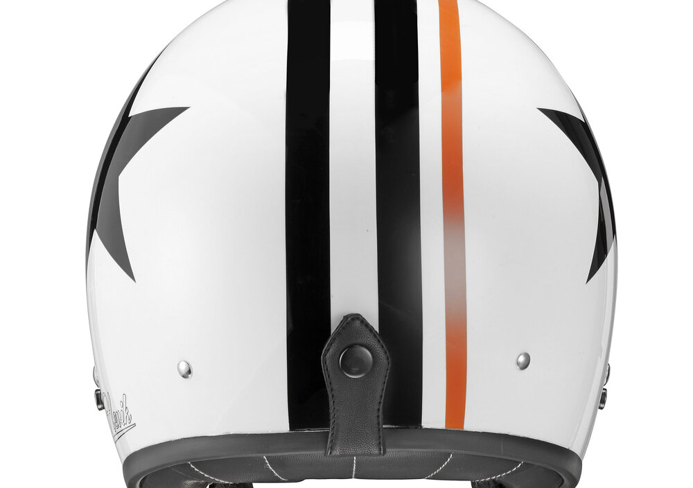 Elegante e raffinato appare l’HV27 GOLD STRIPES, in nero opaco con bande oro impreziosite da stelline che corrono lungo la calotta; più sportivo ma assolutamente adeguato ai canoni old style si presenta il “BLACK STAR”, con calotta in bianco lucido, strisce verticali (tra cui una “outsider” in rosso) e due grandi stelle ai lati della calotta.