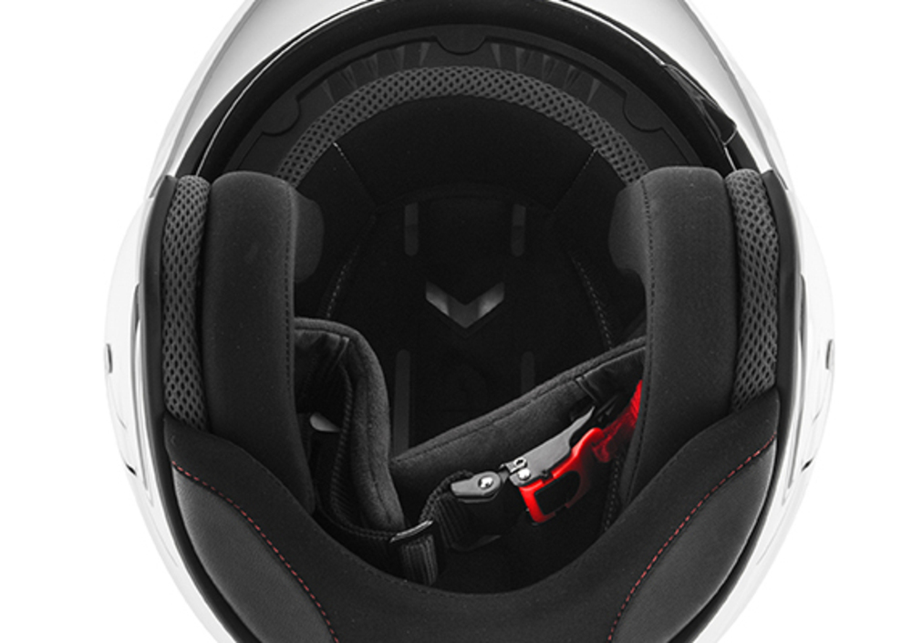 La calotta, costruita in fibre composite, è in misura unica e gli interni sono realizzati in tessuto anallergico e sono amovibili e lavabili.