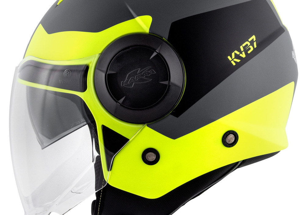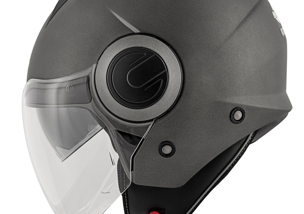 A proteggere volto e occhi ci pensano una visiera antigraffio particolarmente lunga e un visierino interno parasole con comando integrato nel design e facilmente fruibile.