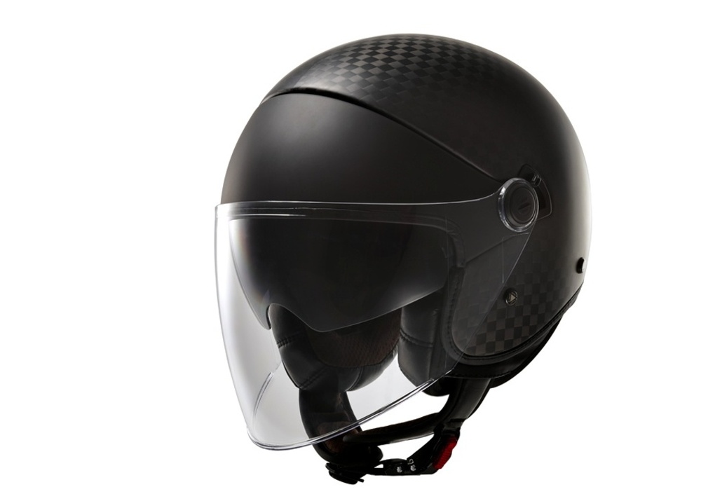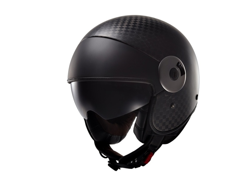 La calotta esterna in carbonio a vista a trame larghe è stampata in tre misure, così come sono tre le misure della calotta interna in polistirolo a densità differenziata. In questo modo ogni utilizzatore potrà trovare la taglia a lui più consona.