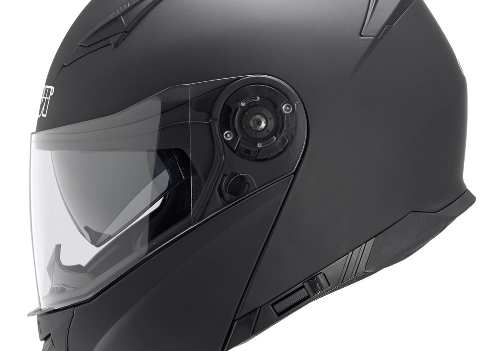 Il nuovo apribile è disponibile in 4 differenti colorazioni e si presenta con una livrea lineare ma dotata di soluzioni di pregio. Valgono una menzione: la predisposizione Pinlock per la visiera principale, il funzionamento preciso del visierino parasole (comandato da un cavo interno in acciaio), l’ottimo sistema di apertura/chiusura della mentoniera, con punti di aggancio in acciaio e un bottone di controllo facilmente identificabile anche con I guanti. E ancora il sistema di aerazione con estrattore posteriore in tinta.