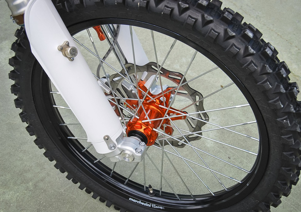 Messe a punto nei Mondiali cross e enduro, le innovative ruote Rock realizzate dalla Marchesini sono le uniche sul mercato ad essere totalmente prive di nipplo. Soluzione tecnica che determina numerosi benefici: notevole riduzione di peso nella zona periferica, eliminazione di 4 raggi rispetto alle ruote tradizionali, raggi molto più dritti e resistenti, pressoché esenzione di manutenzione e regolazione del serraggio grazie anche all'accoppiamento tra raggio e cerchio e al sistema di anti-svitamento (Dri-Loc Plastic) posto sul filetto del raggio.