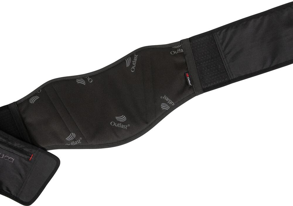 Il materiale antivento Sympatex Windmaster, utilizzato per questa cintura Vanucci, forma uno strato di aria calda tra il corpo e gli indumenti.