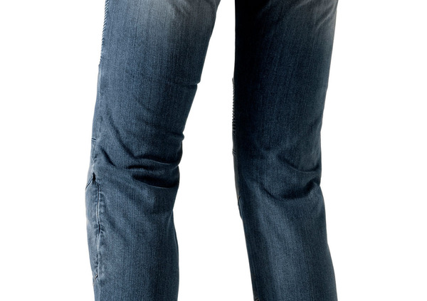 Piacevole da indossare, non soltanto in sella, SYS-PRO è realizzato in 100% cotone Denim comfort elasticizzato, trattato stone washed e sanded: procedure di abrasione superficiale che conferiscono quell’aspetto vintage leggermente usurato e schiarito in alcune zone.