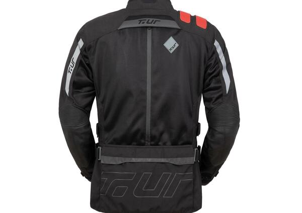 Per offrire il massimo comfort, J-FOUR è dotata di una tasca posteriore dove si può alloggiare la sacca idrica (quanto mai indispensabile d’estate), che T.ur propone nel kit HYDRO&SUPPORT SYSTEM (39,00 euro) insieme alla cintura lombare per sostenerne il peso, in modo da non gravare sulle spalle e sul collo del pilota. Ma le virtù di J-FOUR non finiscono qui: per un maggiore comfort, sui lati della giacca sono presenti due soffietti in rete, apribili al bisogno; infine, un ricco apparato di tasche e regolazioni rende la giacca ancora più funzionale e pratica.