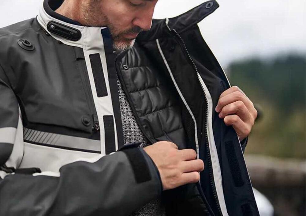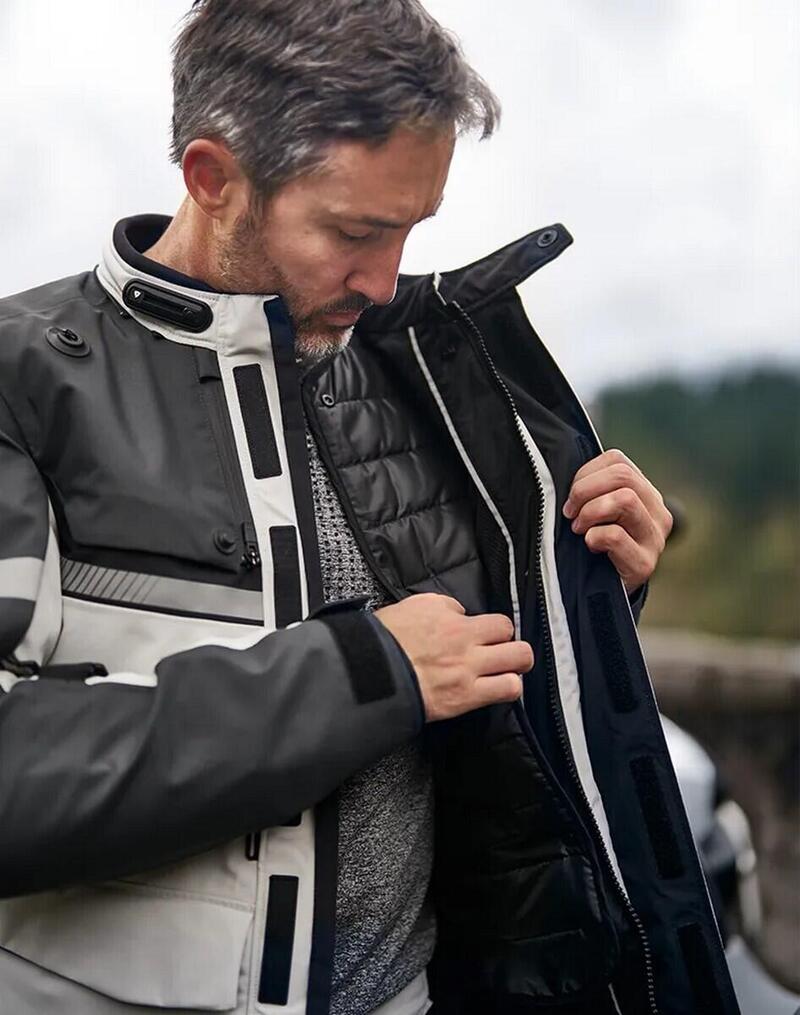 Non manca la fodera termica che si estrae per essere indossata separatamente come giacca, e non manca la capacità di carico: con un totale di undici tasche su tutto il completo, interne ed esterne, ovviamente impermeabili, lo spazio non manca.