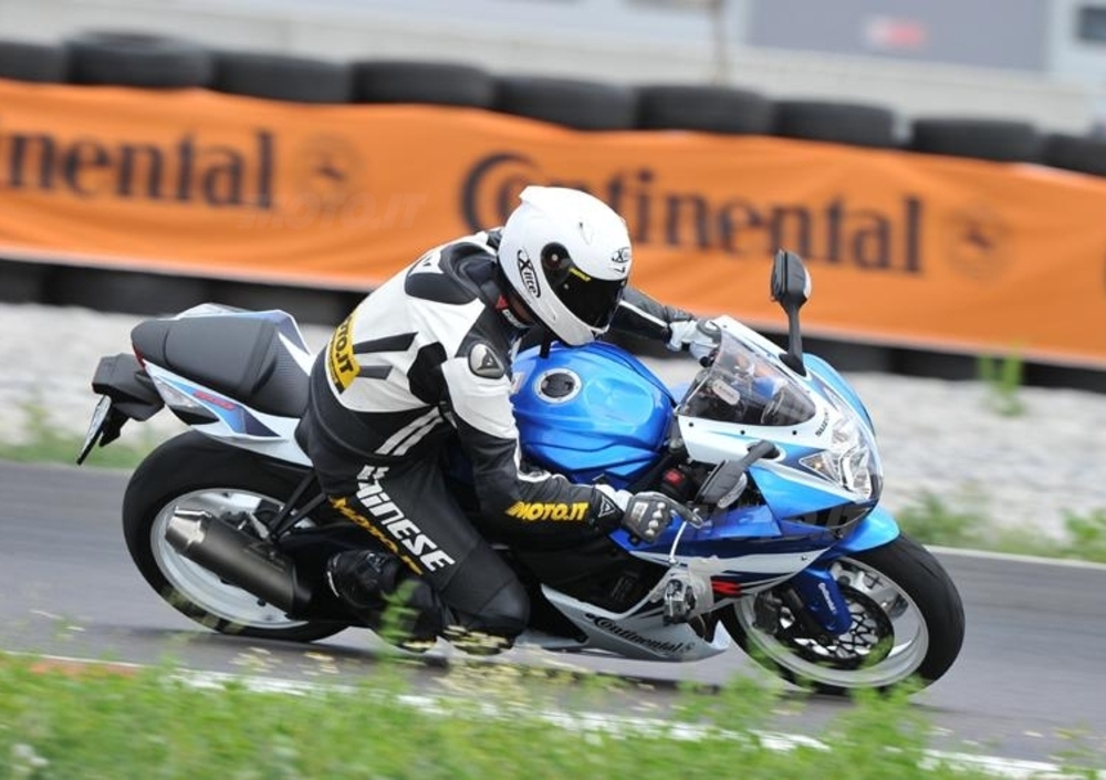 Saltiamo in sella alla Suzuki GSX-R 600, più piccola e meno potente della Kawasaki, ma dotata di una ciclistica e di un motore che in pista fanno scintille. Le prestazioni sul circuito di San Martino del Lago ovviamente migliorano e, grazie alle sospensioni più sportive, possiamo saggiare le doti “racing” delle ContiSportAttack 2. L’anteriore conferma le doti di maneggevolezza e di ottimo handling; è assai limitata anche la tendenza auto raddrizzante quando si frena a moto ancora piegata. Al posteriore il discorso in parte cambia. La ciclistica della Gixxer consente infatti di accelerare forte a moto inclinata in uscita di curva e dopo alcuni giri di pista il posteriore inizia ad avvertire l’approssimarsi del limite. Si sente uno lieve scivolamento dello pneumatico, che viene però chiaramente comunicato al pilota. Delle ContiSportAttack 2 si apprezzano infatti non solo il grip e la maneggevolezza, ma anche e soprattutto la capacità di trasmettere al pilota il livello di aderenza della gomma sull’asfalto. In sintesi, delle ottime gomme stradali che sanno dire la loro anche su diversi turni in pista con moto di vario genere.