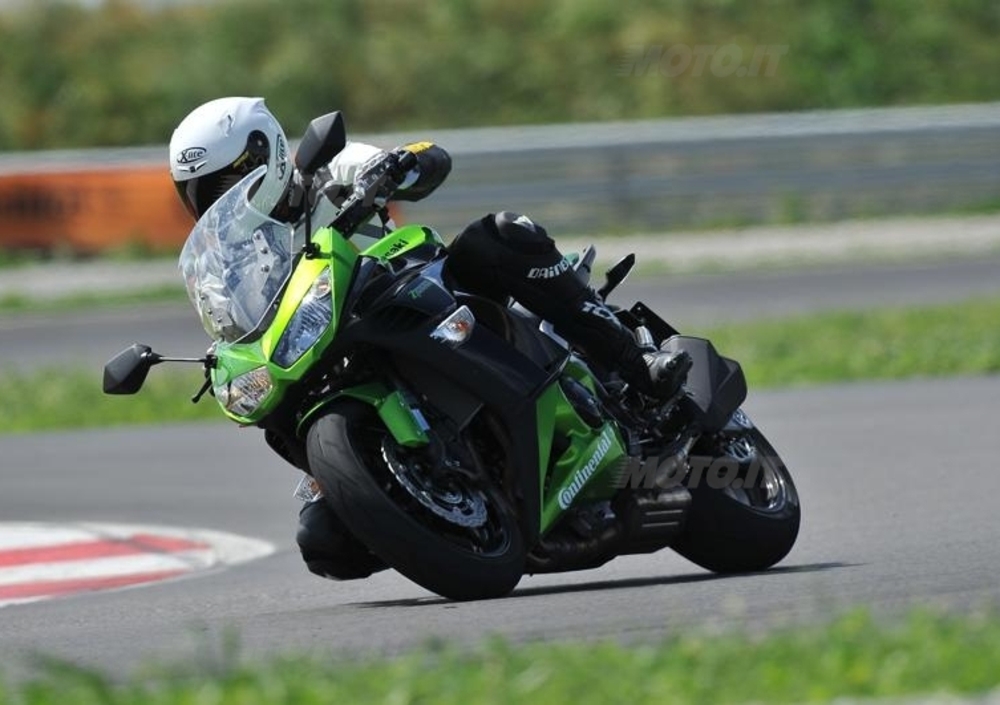 Iniziamo a prendere confidenza con le ContiSportAttack 2 alla guida della Z1000SX. Il profilo dell’anteriore dona alla moto un buono handling, la Kawasaki è infatti rapida nello scendere in piega e tiene bene la corda. In uscita di curva la compressione della sospensione posteriore aumenta il sottosterzo, mentre lo pneumatico garantisce un ottimo grip anche dopo diversi giri a ritmo sostenuto. È difficile percepire il limite di tenuta dell’anteriore, che è davvero elevato, mentre dietro ogni scivolamento della gomma viene fedelmente trasmesso al pilota che ha quindi esatto sentore di cosa accade sotto le ruote.