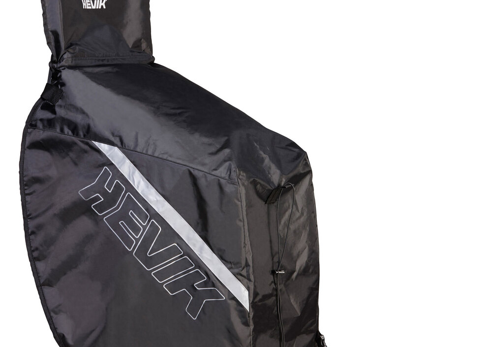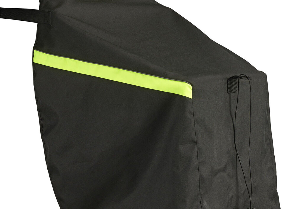 In entrambi i casi il coprigambe di HEVIK si indossa - all’occorrenza - in un minuto e una volta a destinazione si ripiega nella pettorina, per essere riposto nel sottosella.