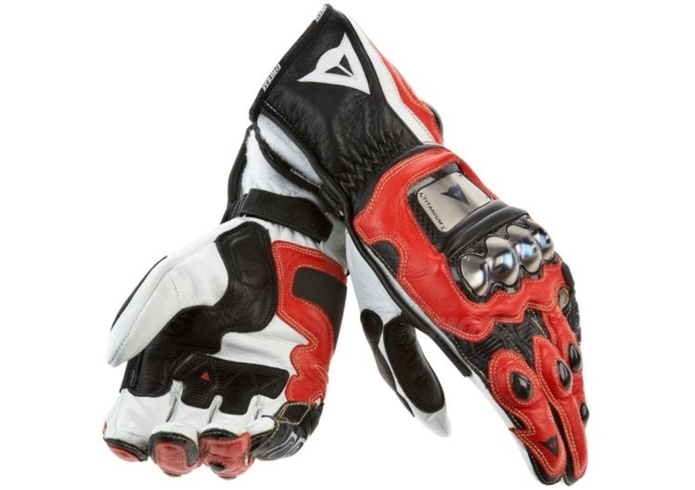 Tutta la tecnologia e l'esperienza maturata da Dainese nelle corse e nella collaborazione con i grandi campioni del motociclismo hanno portato allo sviluppo di questo guanto racing dal livello di sicurezza elevatissimo, e che mantiene allo stesso tempo un grande comfort di guida. Costruito utilizzando i materiali più resistenti e all'avanguardia, come titanio, fibra di carbonio, filo di Kevlar®, per consentire un'elevatissima resistenza all'abrasione e all'assorbimento degli impatti, presenta soluzioni tecniche frutto dello studio ergonomico e dei punti più sollecitati in caso di caduta. (269 euro).