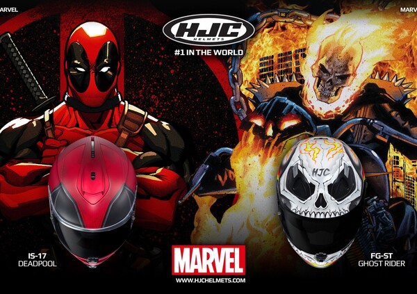 Vista la grande richiesta da parte del pubblico, HJC amplia la gamma di caschi dedicati ai supereroi, introducendo due nuovissime livree: Deadpool e Ghost Rider.