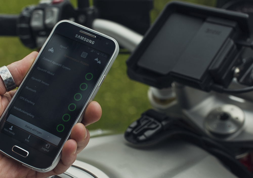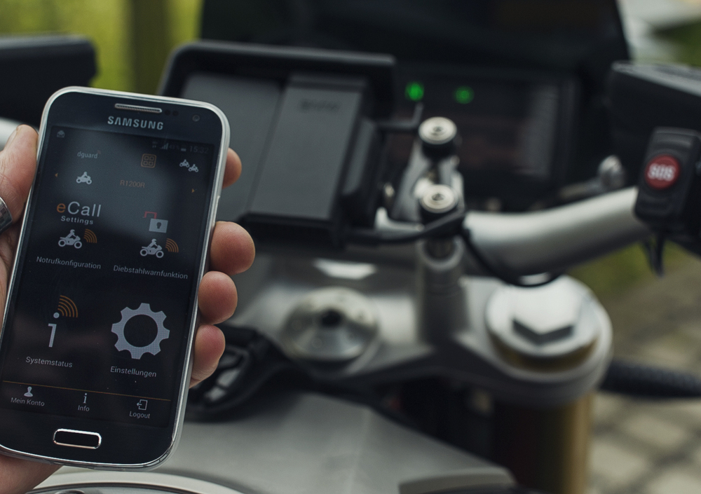 A differenza del mercato auto, dove diventerà obbligatorio a partire dal 2018, l’equipaggiamento di serie con un sistema “eCall” non riguarda ancora il settore moto. Un tale sistema ha però altrettanto senso su un veicolo a due ruote, perché molti motociclisti cercano strade poco frequentate possibilmente in aree remote per godersi la guida. Il nuovo sistema Dguard aiuta proprio in queste situazioni. Grazie a un sistema sofisticato di sensori, Dguard riconosce le condizioni di un incidente ed effettua in pochi secondi una chiamata d'emergenza.