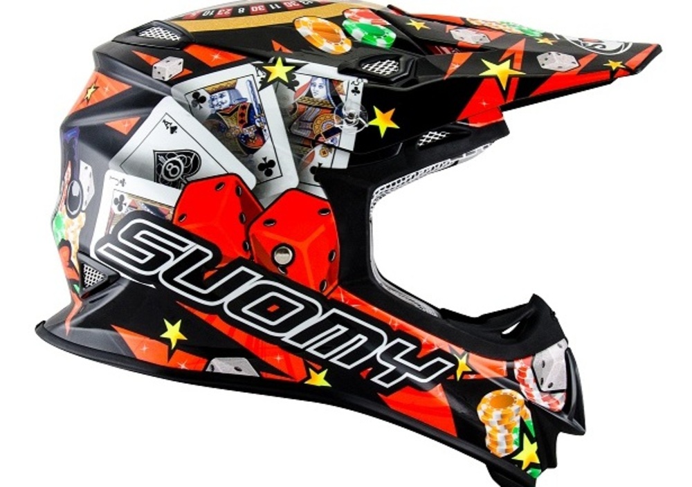 Carte, dadi e roulette sono da anni il leit motiv di molti modelli Suomy, le colorazioni fluo, giallo e fuxia, lo rendono unico nel suo genere. Per i più dark ora arriva la nuova colorazione nera. Le nuove colorazioni su base nera sono disponibili ad un prezzo di 389 Euro IVA inclusa.