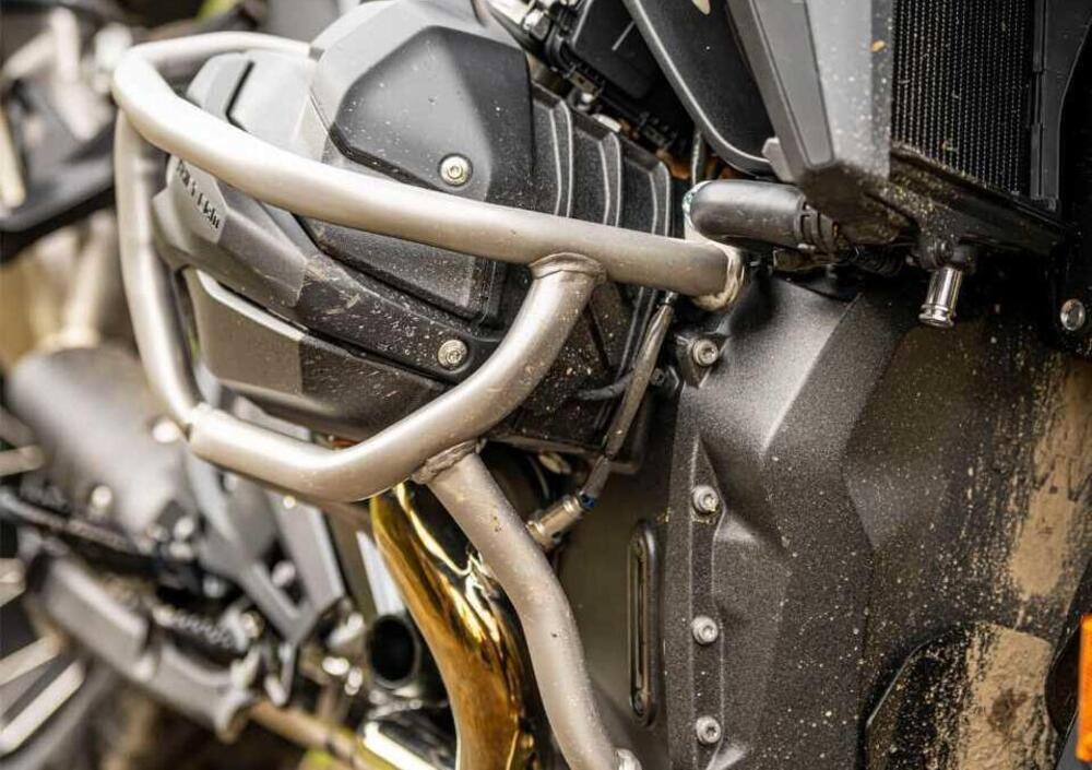 Come il suo fratello maggiore Ultimate, protegge in modo sicuro non solo i cilindri e i coperchi valvole, ma anche entrambe le sonde lambda. E, anche in questo caso, una maggiore protezione equivale a una più elevata sicurezza passiva e a un piacere di guida superiore. In caso di caduta o ribaltamento della moto, le forze sono distribuite in modo ottimale sulla struttura di protezione fino ai punti di montaggio.