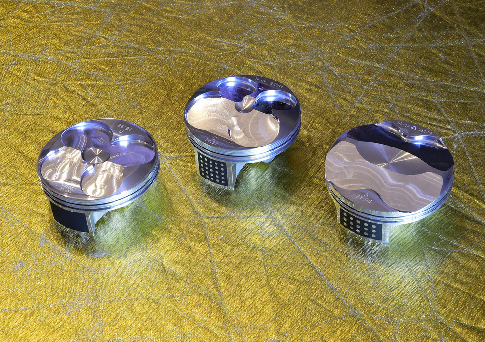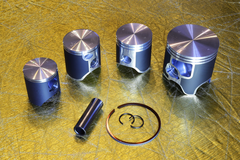 Caratteristiche rilevanti di questi pistoni disponibili in kit completi di segmenti, spinotti e anelli di tenuta, sono il peso ai limiti minimi della categoria e il rapporto di compressione maggiorato che aumenta sensibilmente le prestazioni del motore mantenendone inalterata l’affidabilità.