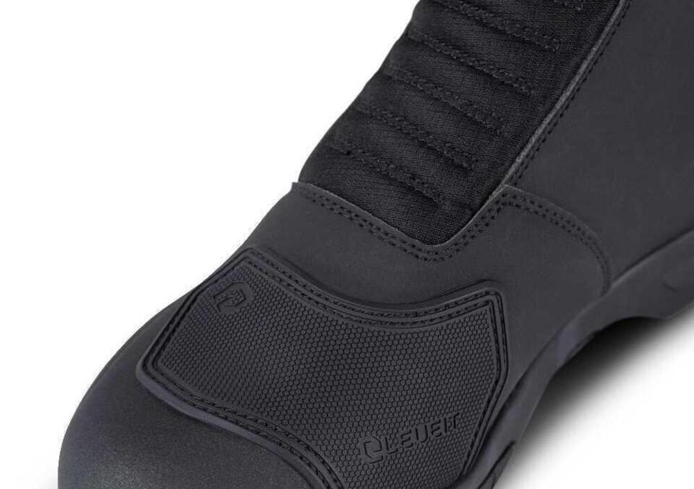 La protezione è garantita da rinforzi su tallone, punta e malleoli, e un inserto in poliuretano saldato nella zona della leva cambio aumenta la resistenza all’usura.