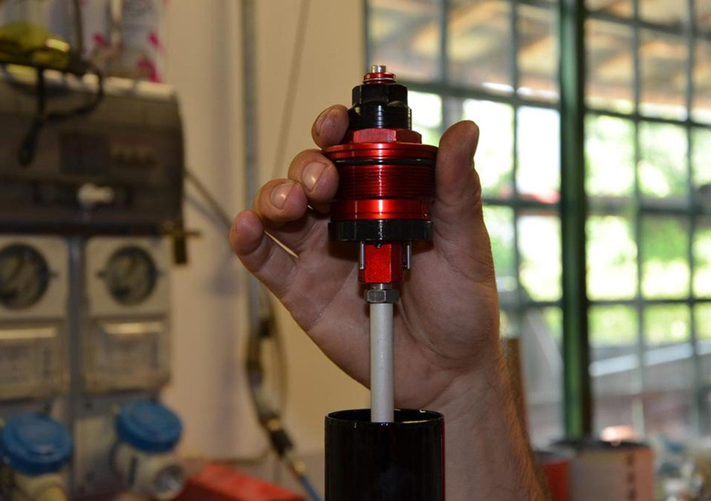 La tabella di marcia inizia dal reparto sospensioni, la ciclistica va completamente rivista tenendo a mente che l'obiettivo è creare appunto una Stunt Bike: tra impennate, stoppie e derapate varie avrà bisogno proprio di un set-up coi fiocchi! Partiamo dall'anteriore. La forcella originale lascia spazio a quella della Speed Triple, su cui installiamo il nostro kit valvole, per garantire più controllo e stabilità, assicurando un feeling con la moto senza precedenti. Abbiamo montato inoltre la nostra piastra di sterzo per forcelle USD. Passando al posteriore, ecco i nuovi ammortizzatori Bitubo da 400 mm, in grado di offrire regolazioni e una qualità non possibile con l’assetto originale: precarico molla, estensione e compressione sono ora tarabili con il minimo sforzo!