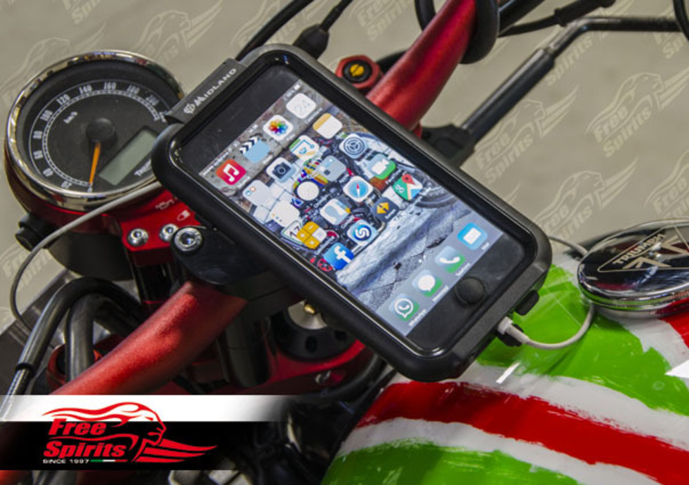 Supporto snodato regolabile in lega ricavato dal pieno, per custodie smartphone e/o navigatore Midland.