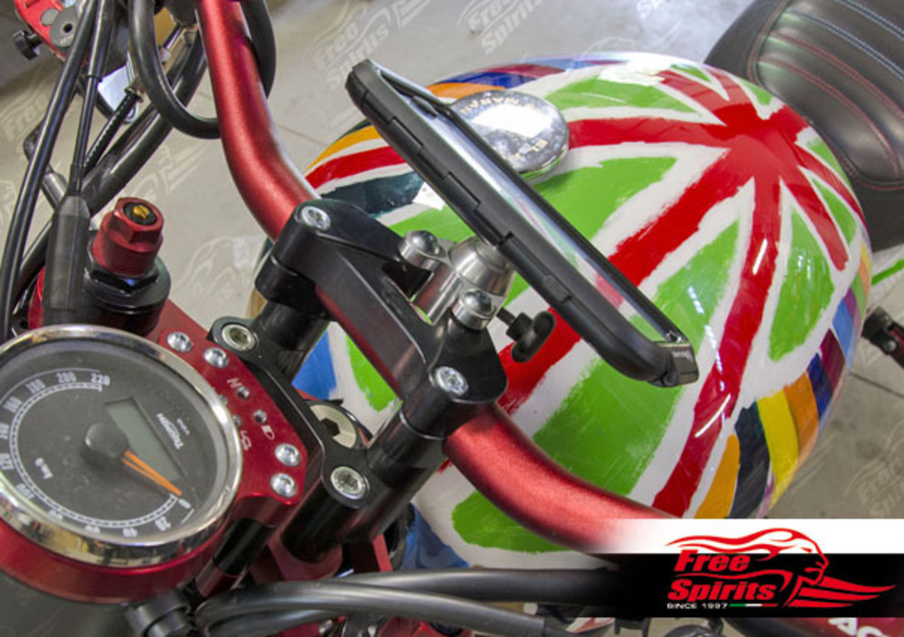 Questo modello si fissa su riser originali delle Bonneville. La custodia non è compresa nel kit. Il supporto è veloce e facile da montare, non richiede alcuna modifica ed è completo di tutto l'occorrente per il montaggio e corredato di istruzioni.
