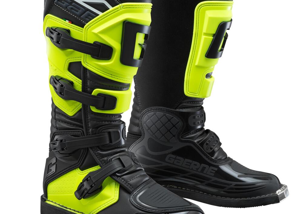 Puntalino in alluminio e quattro leve di chiusura regolabili e intercambiabili per personalizzare la chiusura e la calzata dello stivale. Ai piedi dei più piccoli tutto il comfort e la sicurezza dei professionisti del motocross e supercross.
