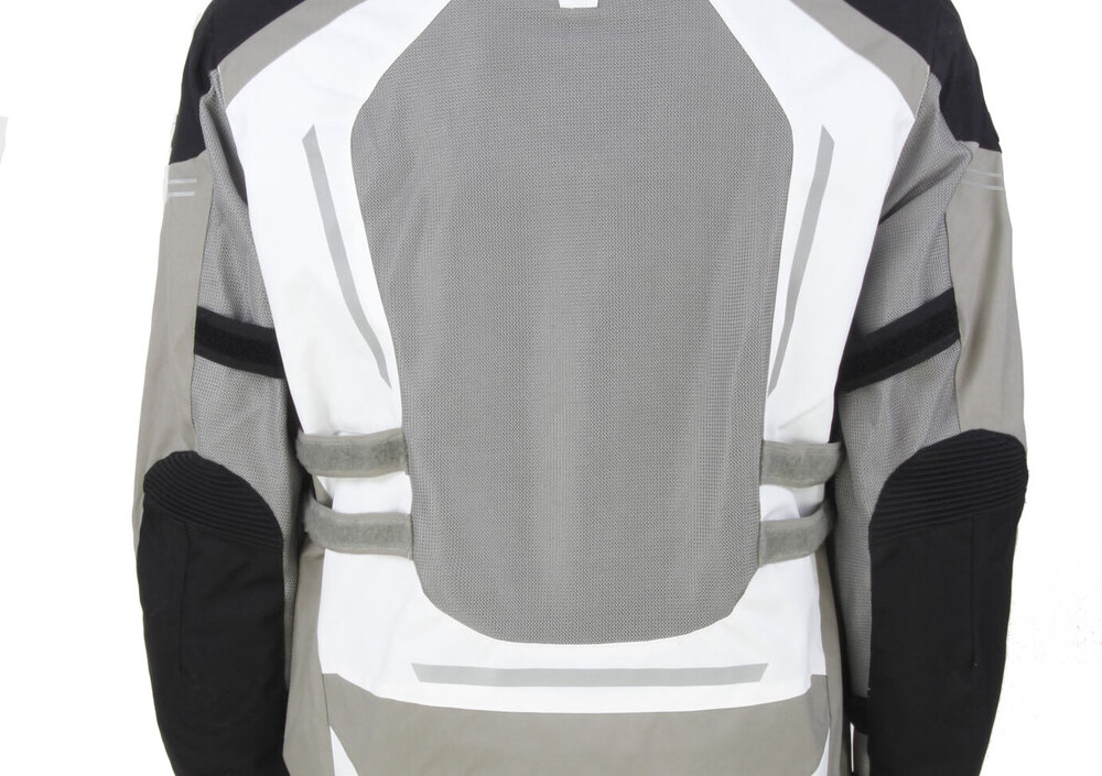 Per gite o vacanze in moto o scooterone, l’estiva LAND rappresenta una scelta da valutare. Il merito va innanzitutto – lo ripetiamo – al suo taglio medio, al quale si aggiunge la possibilità di averla in versione LADY, che ne riprende sostanzialmente tutte le caratteristiche tecniche e la gamma colori. Quest’ultima propone il total black e un accattivante bianco/grigio con l’aggiunta di un tocco di nero su spalle e avambracci posteriori. Chi cerca taglie forti qui si troverà a casa: la LAND arriva “di serie” a 5XL.