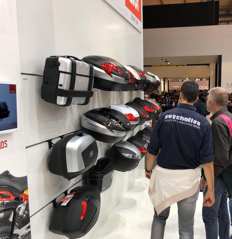All’edizione del 2018 di EICMA GIVI ha denunciato un’azienda cinese presente in fiera con copie di valigie e bauletti, riconosciute come tali e conseguentemente sequestrate dalla Guardia di Finanza.