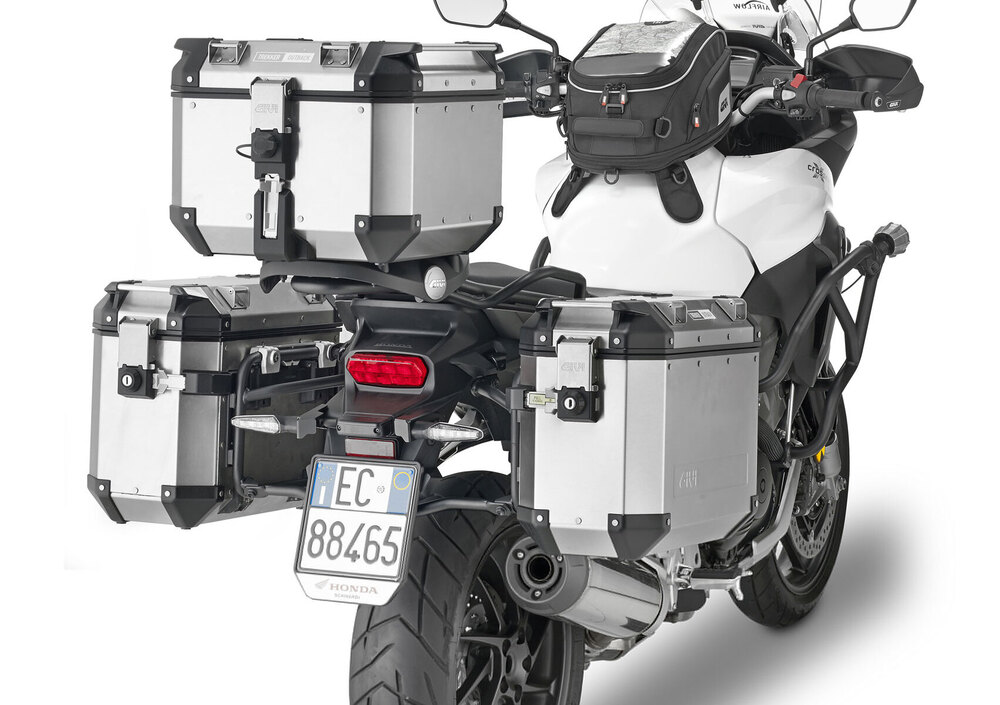 Questi plus rendono la VFR800X adatta anche al turismo a largo raggio, concetto che GIVI concretizza attraverso kit articolati e facilmente ampliabili.