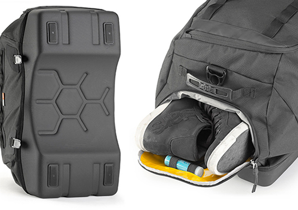 È un borsone di grande capacità (65 litri), studiato per essere solidale alla sella posteriore grazie alla forma incavata della particolare scocca che ne caratterizza il fondo.