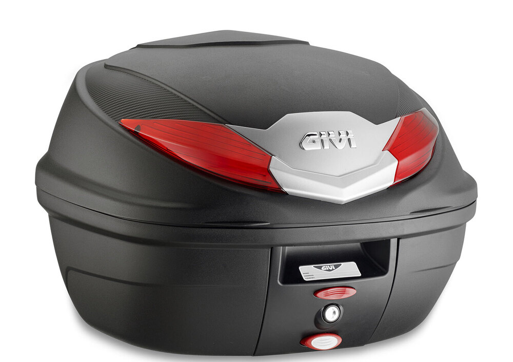 Con questa proposta GIVI aggiunge un’ulteriore variante al look dei suoi top case Monolock, facendo leva su elementi provenienti dal mondo sportivo, come la finitura del coperchio ad effetto “carbonio” e il taglio dei catadiottri rossi (disponibili fumè nella versione TECH del top case). L’impatto estetico è sostenuto anche dal contrasto tra elementi spigolosi e la forma “smooth” del guscio che – soprattutto il coperchio – è stato studiato per ottimizzare al massimo la capacità interna (36 litri). L’utente che sceglie il B360 potrà alloggiarvi un casco modulare + gli accessori di utilizzo quotidiano. Oppure due jet + un completo antipioggia o un gilet. Lo spazio dunque non manca e viene ben dissimulato dalla forma compatta del bauletto (dimensioni 440x340x495 mm); il limite di peso consentito è di 3 kg.
